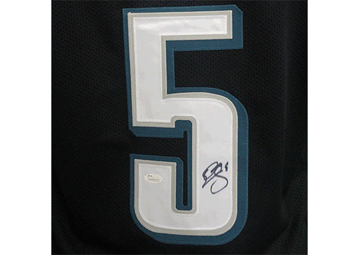 This is a custom football jersey in XL hand-signed by Donovan McNabb. The autograph is certified authentic by JSA. Please note: The photo shown is ...