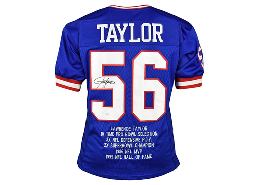 The Lawrence Taylor signed custom blue football jersey is a highly sought-after collectible for fans of the New York Giants and football enthusiast...