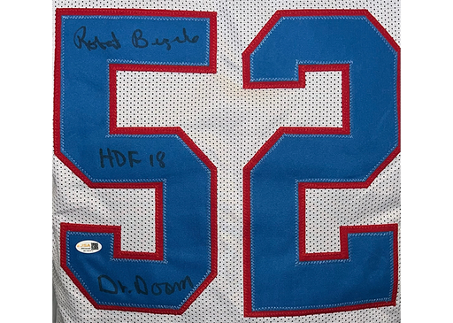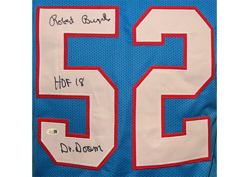 This is a custom football jersey in XL hand-signed by Robert Brazile. The autograph is certified authentic by JSA. Please note: The photo shown is ...
