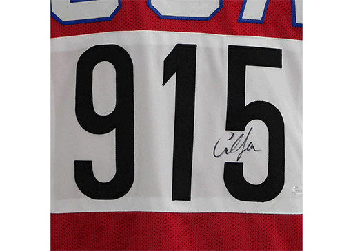 A olympic-style XL stitched USA jersey autographed by Carl Lewis and authenticated by JSA.