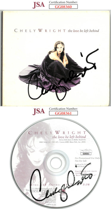 Chely Wright is an American activist, author and country music artist. She initially rose to fame as a commercial country recording artist with several charting singles. Chely Wright has hand signed this 1996 the love he left behind Book and CD/ 2 signatures. JSA Authentication #GG08360 on Booklet and JSA Authentication #GG08361 on CD/ both with JSA Certificate of Authenticity. CD signature imperfect/bubbled as shown. All discs are in USED condition and will show some signs of handling/condition as shown