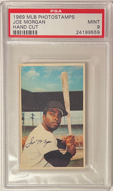 This is a Joe Morgan 1969 MLB PhotoStamps Card- PSA Graded 9 Mint. Image of actual item instock - as shown.