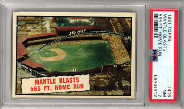 Mickey Mantle 1961 Topps Blasts 565 FT Home Run Card #406- PSA Graded 7 NM (New York Yankees)